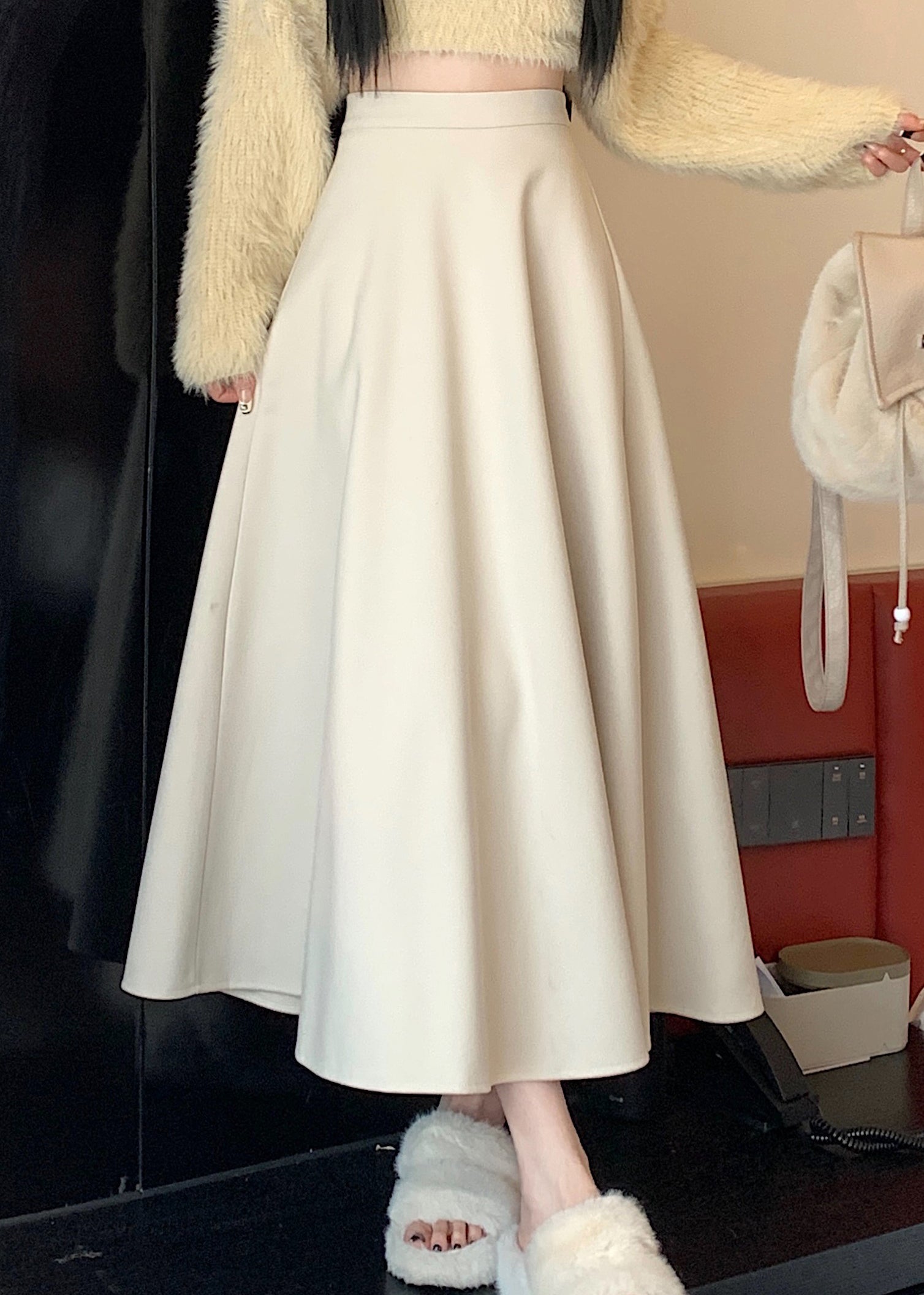 Apricot Loose Versatile Elastic Waist Wrinkled Skirts Spring QQ1013
