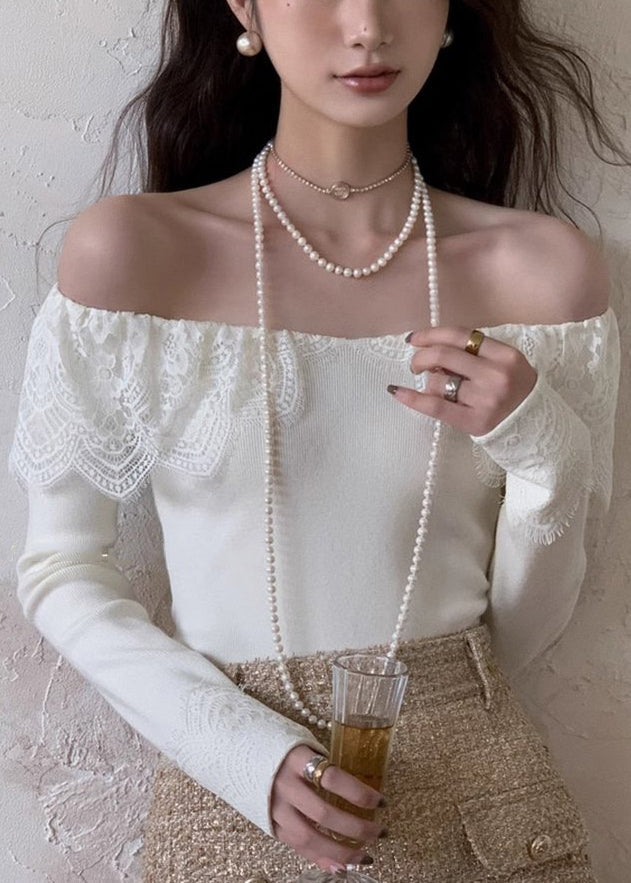 Fall Cotton Patchwork Lace Black Slim T Fit Shirt