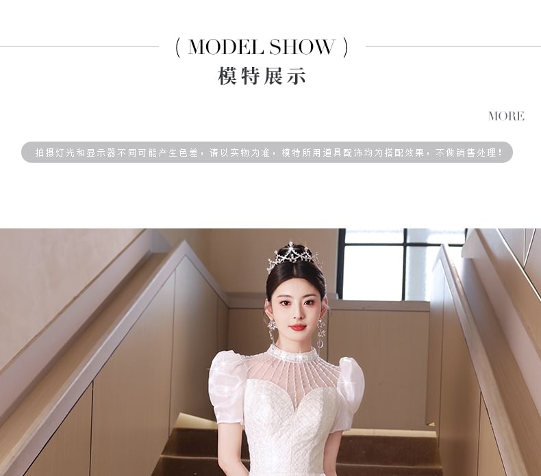 Short-Sleeve Beaded Sequin Mermaid Wedding Gown