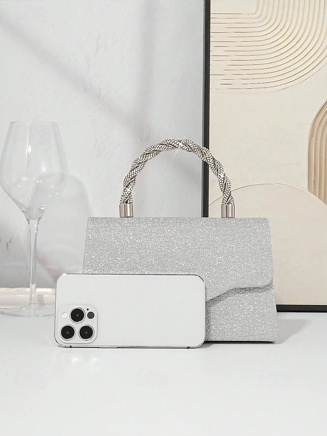 Silver Handbag Glitter Women's – Rhinestone Handle with